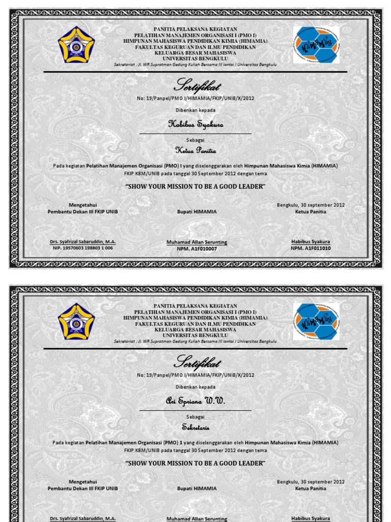 contoh sertifikat Sumber : www.scribd.com